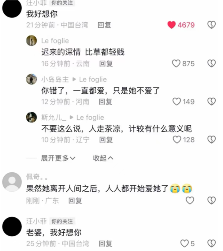汪小菲还写了一篇长长的悼念文章,字里行间都是对大S的思念。大家就纳闷了,这种心里话自己偷偷写下来怀念就行了,非得发到网上,是不是想借此出出风头,给自己弄个“史上最深情前夫”的名号?在这个时候,大家更希望他能冷静点,理智地处理后面的事情。